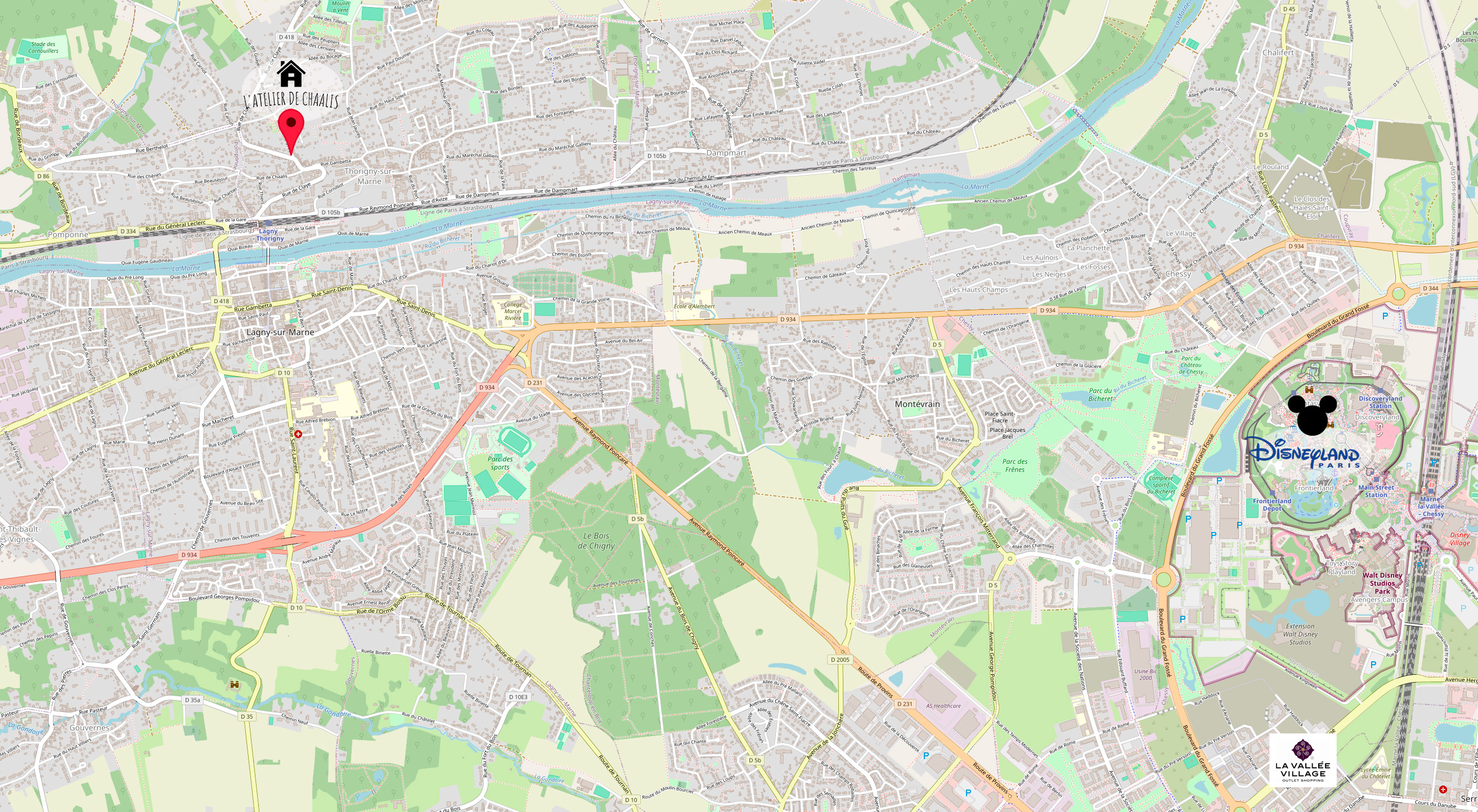 A 10 min à pied, en passant par les bords de Marne, découvrez Lagny-sur-Marne, ses cafés et restaurants, ses commerces et son marché 3 fois par semaine. L'office du tourisme se trouvera le long de votre cheminement. À 20-25 minutes en voiture, rejoignez les parcs Disneyland Paris et Disneyland Studio, Val d'Europe et la Vallée Village. (45-50 minutes en transports en communs)