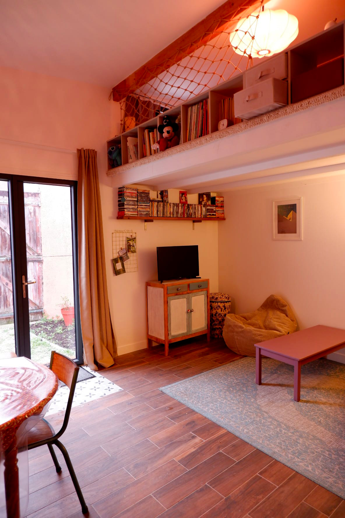 Agréable maisonnette/studio de 30m² sur cour végétalisée, refait à neuf, avec grande mezzanine de 8m², accès par une petite impasse proche du centre ville, près de la Marne et de Disneyland Paris.